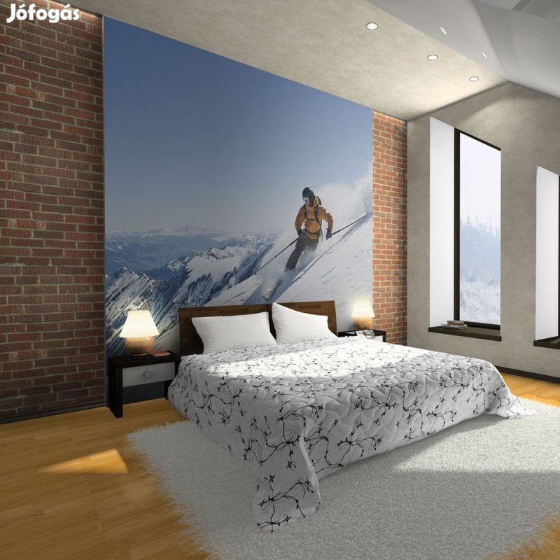 Tartós, víz és karcálló, falra ragasztható "Síelés a hegyekben" flíz fotótapéta. Az inspiráló motívummal ellátott "Síelés a hegyekben" című fotótapéta hatásosan díszít minden helyiséget. A flíz tapéták ragasztással kerülnek rögzítésre. Minden helyiségben felragasztható, még fürdőszobában vagy konyhában is. Flíz tapéta, fényes bevonat. A 100%-os flíz eltakarja a fal apró egyenetlenségeit. Egy melegítő szigetelő réteget alkot, de lehetővé teszi a fal lélegzését. A vízálló nyomtatás nagyon tartós.
