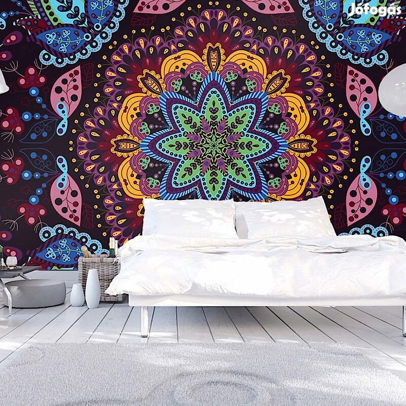 Tartós, víz és karcálló, falra ragasztható "Színpompás Mandala" flíz fotótapéta. Az inspiráló motívummal ellátott Színpompás Mandala című fotótapéta hatásosan díszít minden helyiséget. A flíz tapéták ragasztással kerülnek rögzítésre. Minden helyiségben felragasztható, még fürdőszobában vagy konyhában is. Flíz tapéta, fényes bevonat. A 100%-os flíz eltakarja a fal apró egyenetlenségeit. Egy melegítő szigetelő réteget alkot, de lehetővé teszi a fal lélegzését. A vízálló nyomtatás nagyon tartós.