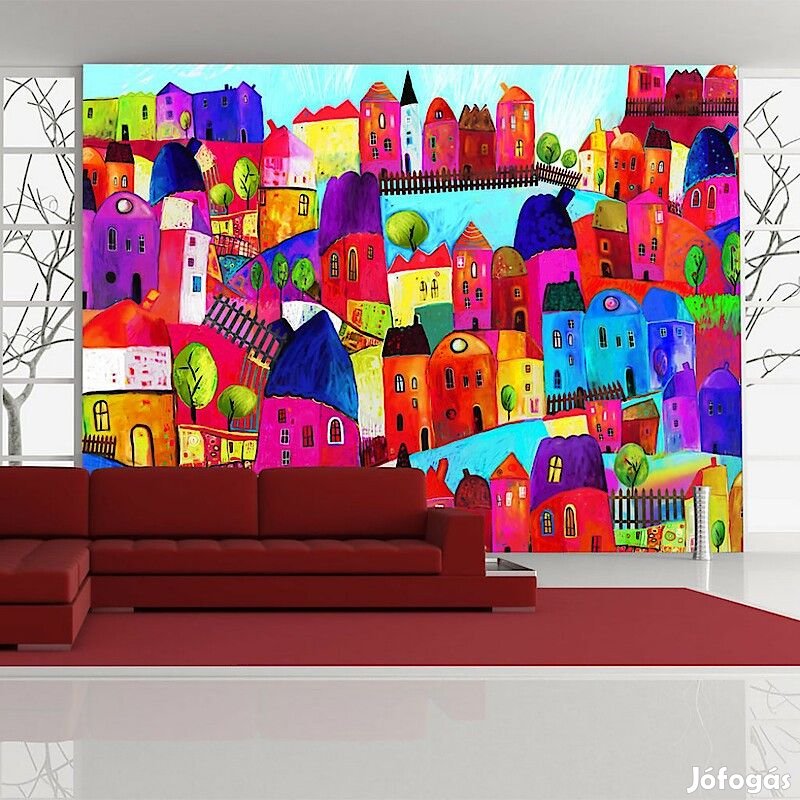 Tartós, víz és karcálló, falra ragasztható "Szivárványos város" flíz fotótapéta. Az inspiráló motívummal ellátott Szivárványos város című fotótapéta hatásosan díszít minden helyiséget. A flíz tapéták ragasztással kerülnek rögzítésre. Minden helyiségben felragasztható, még fürdőszobában vagy konyhában is. Flíz tapéta, fényes bevonat. A 100%-os flíz eltakarja a fal apró egyenetlenségeit. Egy melegítő szigetelő réteget alkot, de lehetővé teszi a fal lélegzését. A vízálló nyomtatás nagyon tartós.