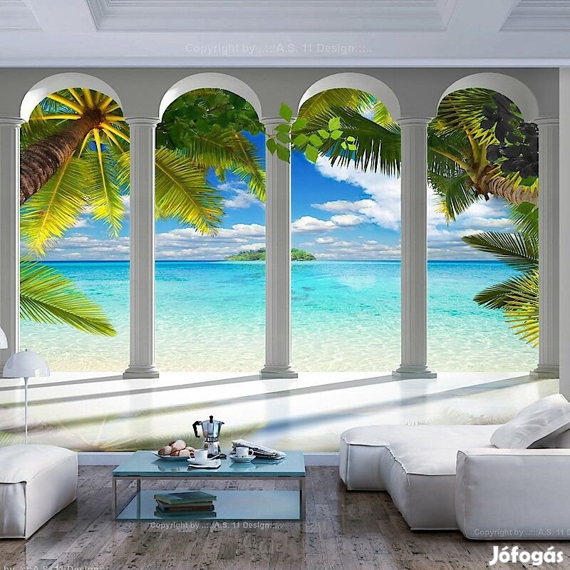 Tartós, víz és karcálló, falra ragasztható "Tenger oszlopok mögött" flíz fotótapéta. Az inspiráló motívummal ellátott "Tenger oszlopok mögött" című fotótapéta hatásosan díszít minden helyiséget. A flíz tapéták ragasztással kerülnek rögzítésre. Minden helyiségben felragasztható, még fürdőszobában vagy konyhában is. Flíz tapéta, fényes bevonat. A 100%-os flíz eltakarja a fal apró egyenetlenségeit. Egy melegítő szigetelő réteget alkot, de lehetővé teszi a fal lélegzését. A vízálló nyomtatás nagyon tartós.