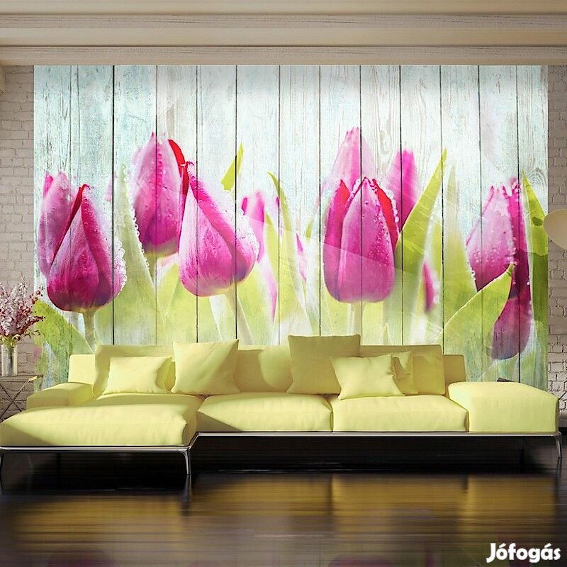 300x210: 50x210 50x210 50x210 50x210 50x210 50x210Tartós, víz és karcálló, falra ragasztható "Tulipánok fával ötvözve" flíz fotótapéta. Az inspiráló motívummal ellátott Tulipánok fával ötvözve című fotótapéta hatásosan díszít minden helyiséget. A flíz tapéták ragasztással kerülnek rögzítésre. Minden helyiségben felragasztható, még fürdőszobában vagy konyhában is. Flíz tapéta, fényes bevonat. A 100%-os flíz eltakarja a fal apró egyenetlenségeit. Egy melegítő szigetelő réteget alkot, de lehetővé teszi a fal lélegzését. A vízálló nyomtatás nagyon tartós.Magas minőségű nyomtatásAz egyedi technológiájú 600 dpi felbontású digitális nyomtatás, valamint az élénk színek azt eredményezik, hogy a flíz fotótapéta kitölti és megnagyobbítja az Ön házának belsejét.Egyszerű felszerelésA fotótapéta könnyedén rögzíthető, 50 cm-es sávokból rakódik össze.Környezetbarát és biztonságosA biztonságos anyagok használatára való tekintettel mintáinkat a hálószobádba, valamint a gyermekeid szobájába is tudjuk ajánlani.Biztonságos csomagolásA fotótapéta fel van tekerve és gyárilag egy kartontubusba van csomagolva, mely biztonságossá teszi a szállítást. Mindegyik tubus tartalmazza a felragasztásra vonatkozó utasításokat.Súly: 120 g/m2