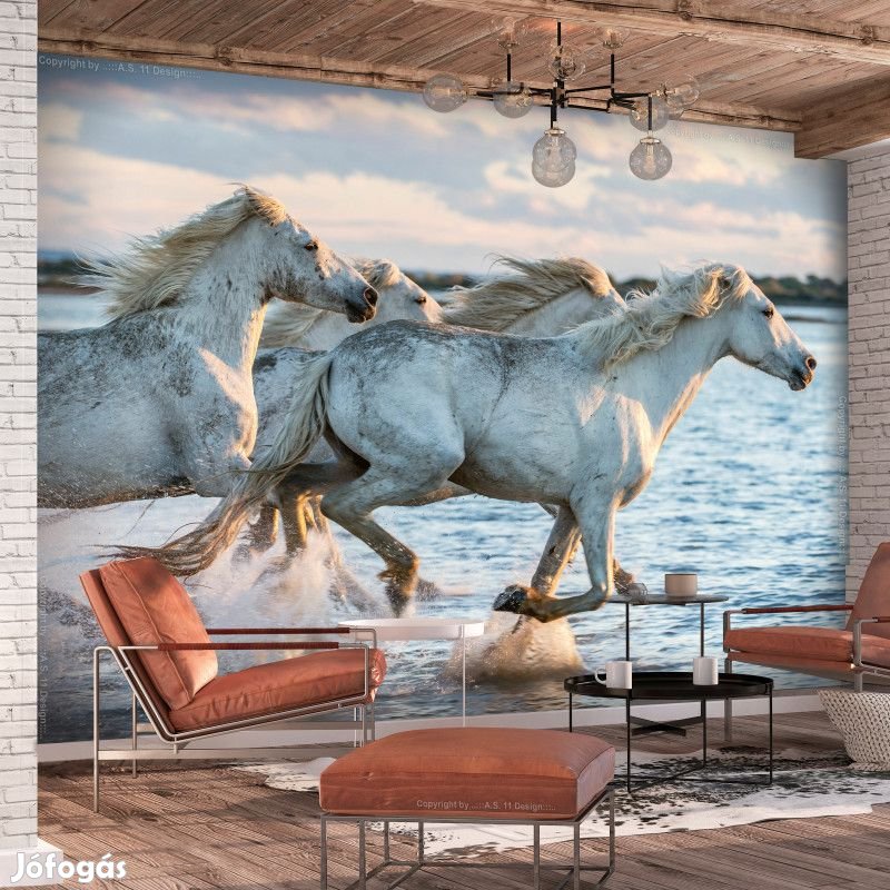 Tartós, víz és karcálló, falra ragasztható "Vágtázó lovak 3" flíz fotótapéta. Az inspiráló motívummal ellátott "Vágtázó lovak 3" című fotótapéta hatásosan díszít minden helyiséget. A flíz tapéták ragasztással kerülnek rögzítésre. Minden helyiségben felragasztható, még fürdőszobában vagy konyhában is. Flíz tapéta, fényes bevonat. A 100%-os flíz eltakarja a fal apró egyenetlenségeit. Egy melegítő szigetelő réteget alkot, de lehetővé teszi a fal lélegzését. A vízálló nyomtatás nagyon tartós.