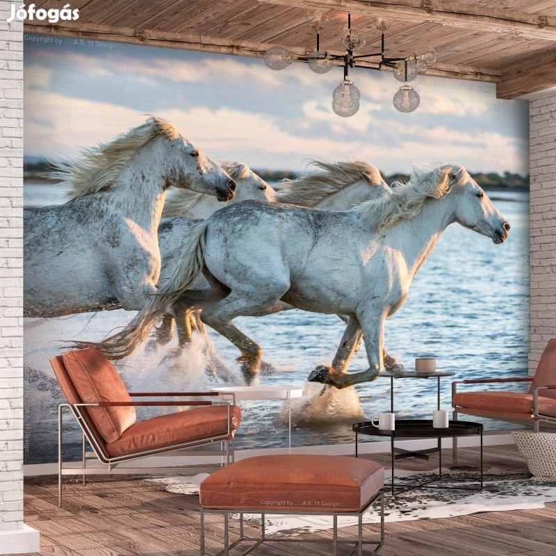 Tartós, víz és karcálló, falra ragasztható "Vágtázó lovak 3" flíz fotótapéta. Az inspiráló motívummal ellátott "Vágtázó lovak 3" című fotótapéta hatásosan díszít minden helyiséget. A flíz tapéták ragasztással kerülnek rögzítésre. Minden helyiségben felragasztható, még fürdőszobában vagy konyhában is. Flíz tapéta, fényes bevonat. A 100%-os flíz eltakarja a fal apró egyenetlenségeit. Egy melegítő szigetelő réteget alkot, de lehetővé teszi a fal lélegzését. A vízálló nyomtatás nagyon tartós.