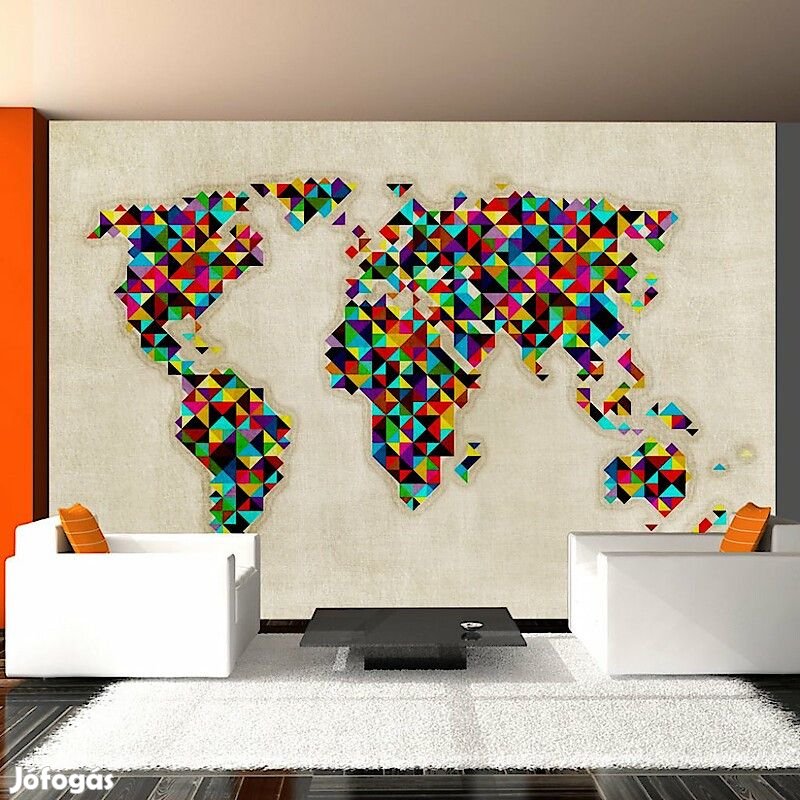 400x309: 50x309 50x309 50x309 50x309 50x309 50x309 50x309 50x309Tartós, víz és karcálló, falra ragasztható "Világtérkép - színek kaleidoszkópja" flíz fotótapéta. Az inspiráló motívummal ellátott Világtérkép - színek kaleidoszkópja című fotótapéta hatásosan díszít minden helyiséget. A flíz tapéták ragasztással kerülnek rögzítésre. Minden helyiségben felragasztható, még fürdőszobában vagy konyhában is. Flíz tapéta, fényes bevonat. A 100%-os flíz eltakarja a fal apró egyenetlenségeit. Egy melegítő szigetelő réteget alkot, de lehetővé teszi a fal lélegzését. A vízálló nyomtatás nagyon tartós.Magas minőségű nyomtatásAz egyedi technológiájú 600 dpi felbontású digitális nyomtatás, valamint az élénk színek azt eredményezik, hogy a flíz fotótapéta kitölti és megnagyobbítja az Ön házának belsejét.Egyszerű felszerelésA fotótapéta könnyedén rögzíthető, 50 cm-es sávokból rakódik össze.Környezetbarát és biztonságosA biztonságos anyagok használatára való tekintettel mintáinkat a hálószobádba, valamint a gyermekeid szobájába is tudjuk ajánlani.Biztonságos csomagolásA fotótapéta fel van tekerve és gyárilag egy kartontubusba van csomagolva, mely biztonságossá teszi a szállítást. Mindegyik tubus tartalmazza a felragasztásra vonatkozó utasításokat.Súly: 120 g/m2