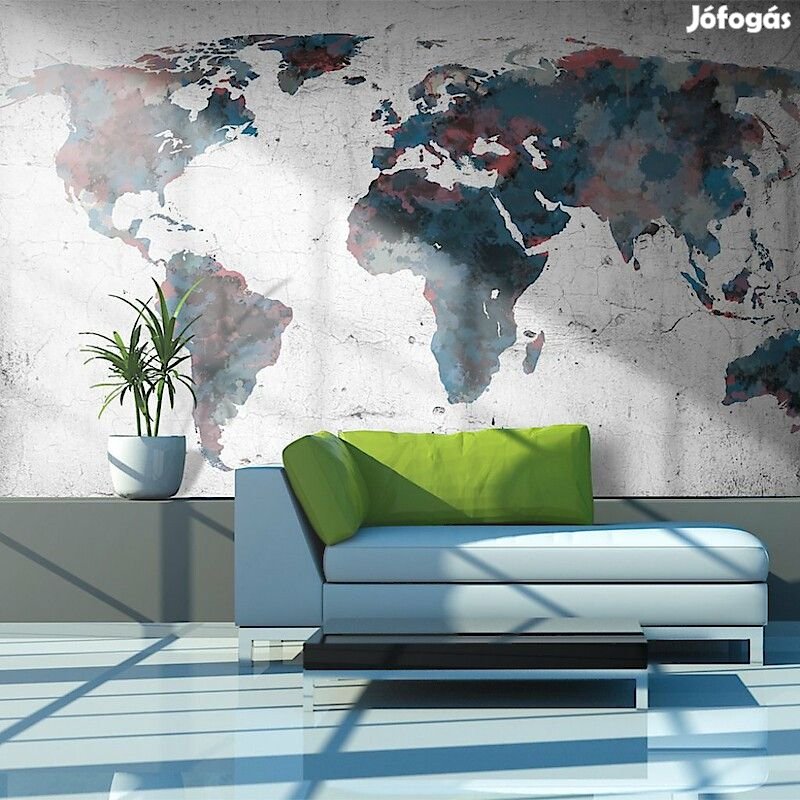 Tartós, víz és karcálló, falra ragasztható "Világtérkép a falon" flíz fotótapéta. Az inspiráló motívummal ellátott Világtérkép a falon című fotótapéta hatásosan díszít minden helyiséget. A flíz tapéták ragasztással kerülnek rögzítésre. Minden helyiségben felragasztható, még fürdőszobában vagy konyhában is. Flíz tapéta, fényes bevonat. A 100%-os flíz eltakarja a fal apró egyenetlenségeit. Egy melegítő szigetelő réteget alkot, de lehetővé teszi a fal lélegzését. A vízálló nyomtatás nagyon tartós.