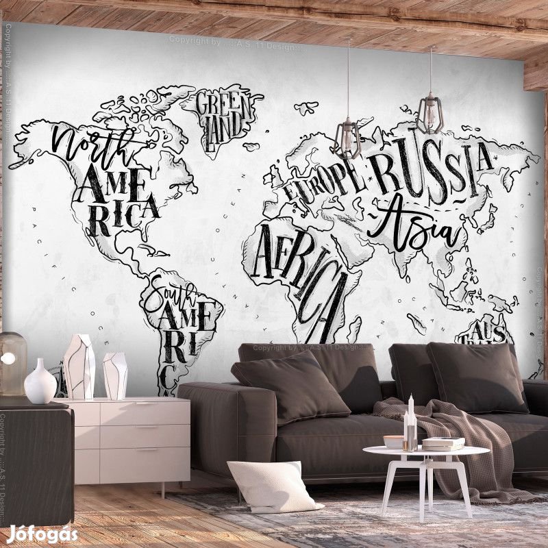 Tartós, víz és karcálló, falra ragasztható "Világtérkép fekete-fehérben" flíz fotótapéta. Az inspiráló motívummal ellátott "Világtérkép fekete-fehérben" című fotótapéta hatásosan díszít minden helyiséget. A flíz tapéták ragasztással kerülnek rögzítésre. Minden helyiségben felragasztható, még fürdőszobában vagy konyhában is. Flíz tapéta, fényes bevonat. A 100%-os flíz eltakarja a fal apró egyenetlenségeit. Egy melegítő szigetelő réteget alkot, de lehetővé teszi a fal lélegzését. A vízálló nyomtatás nagyon tartós.