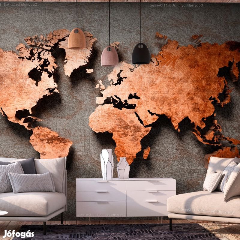 Tartós, víz és karcálló, falra ragasztható "Világtérkép réz színben" flíz fotótapéta. Az inspiráló motívummal ellátott "Világtérkép réz színben" című fotótapéta hatásosan díszít minden helyiséget. A flíz tapéták ragasztással kerülnek rögzítésre. Minden helyiségben felragasztható, még fürdőszobában vagy konyhában is. Flíz tapéta, fényes bevonat. A 100%-os flíz eltakarja a fal apró egyenetlenségeit. Egy melegítő szigetelő réteget alkot, de lehetővé teszi a fal lélegzését. A vízálló nyomtatás nagyon tartós.