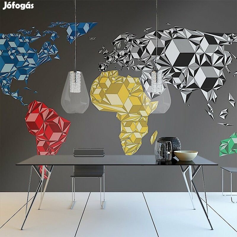 400x309: 50x309 50x309 50x309 50x309 50x309 50x309 50x309 50x309Tartós, víz és karcálló, falra ragasztható "Világtérkép színes téridomokból" flíz fotótapéta. Az inspiráló motívummal ellátott Világtérkép színes téridomokból című fotótapéta hatásosan díszít minden helyiséget. A flíz tapéták ragasztással kerülnek rögzítésre. Minden helyiségben felragasztható, még fürdőszobában vagy konyhában is. Flíz tapéta, fényes bevonat. A 100%-os flíz eltakarja a fal apró egyenetlenségeit. Egy melegítő szigetelő réteget alkot, de lehetővé teszi a fal lélegzését. A vízálló nyomtatás nagyon tartós.Magas minőségű nyomtatásAz egyedi technológiájú 600 dpi felbontású digitális nyomtatás, valamint az élénk színek azt eredményezik, hogy a flíz fotótapéta kitölti és megnagyobbítja az Ön házának belsejét.Egyszerű felszerelésA fotótapéta könnyedén rögzíthető, 50 cm-es sávokból rakódik össze.Környezetbarát és biztonságosA biztonságos anyagok használatára való tekintettel mintáinkat a hálószobádba, valamint a gyermekeid szobájába is tudjuk ajánlani.Biztonságos csomagolásA fotótapéta fel van tekerve és gyárilag egy kartontubusba van csomagolva, mely biztonságossá teszi a szállítást. Mindegyik tubus tartalmazza a felragasztásra vonatkozó utasításokat.Súly: 120 g/m2