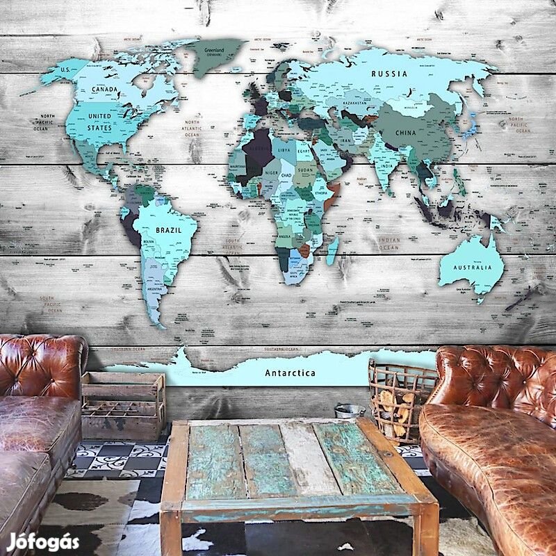 Fotótapéta - Világtérkép tapéta falra: kék kontinensek