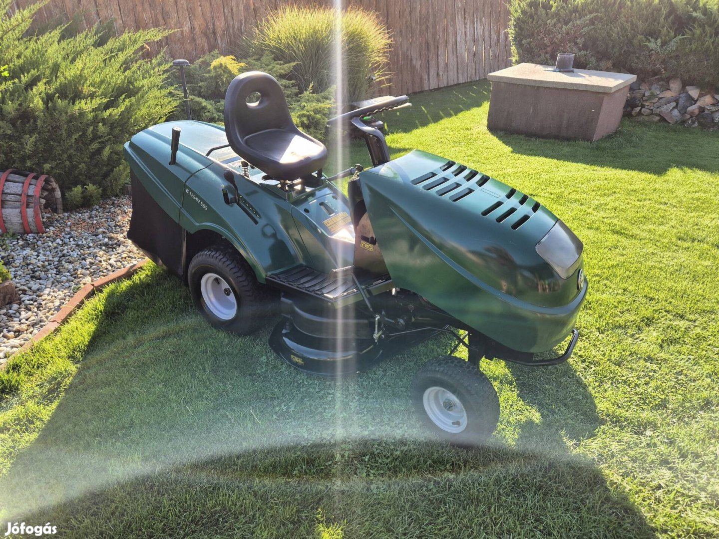 Eladó a képeken látható Castelgarden központi gyűjtős fűnyírótraktor. Motorja Briggs 12,5hp. Mechanikus sebességváltóval rendelkezik. Vágóasztala 2késes 92cm-es vágószélesség Elektromos kaszaház indítással rendelkezik. Fűgyűjtője 250literes ami a gépen ülve üríthető. A gép azonnal munkára fogható.