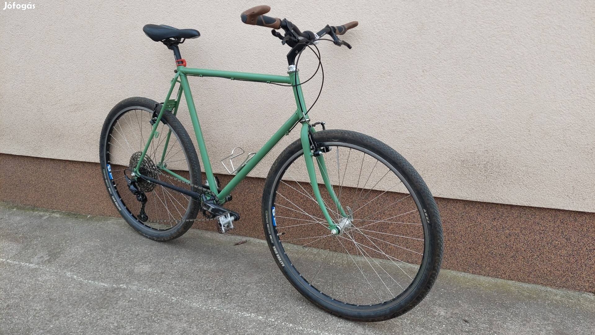 Eladó a képeken látható Gudereit cr-mo vázra épített városi cirkáló. Avid SD 3 fékekkel, Shimano Deore 11 sebességes váltással, Shimano spd/platform pedállal. Rigida szegecselt felnikkel. Magas embereknek, a nyeregvázcső 58cm, a felsőcső 58cm, az átlépési magasság 88cm.