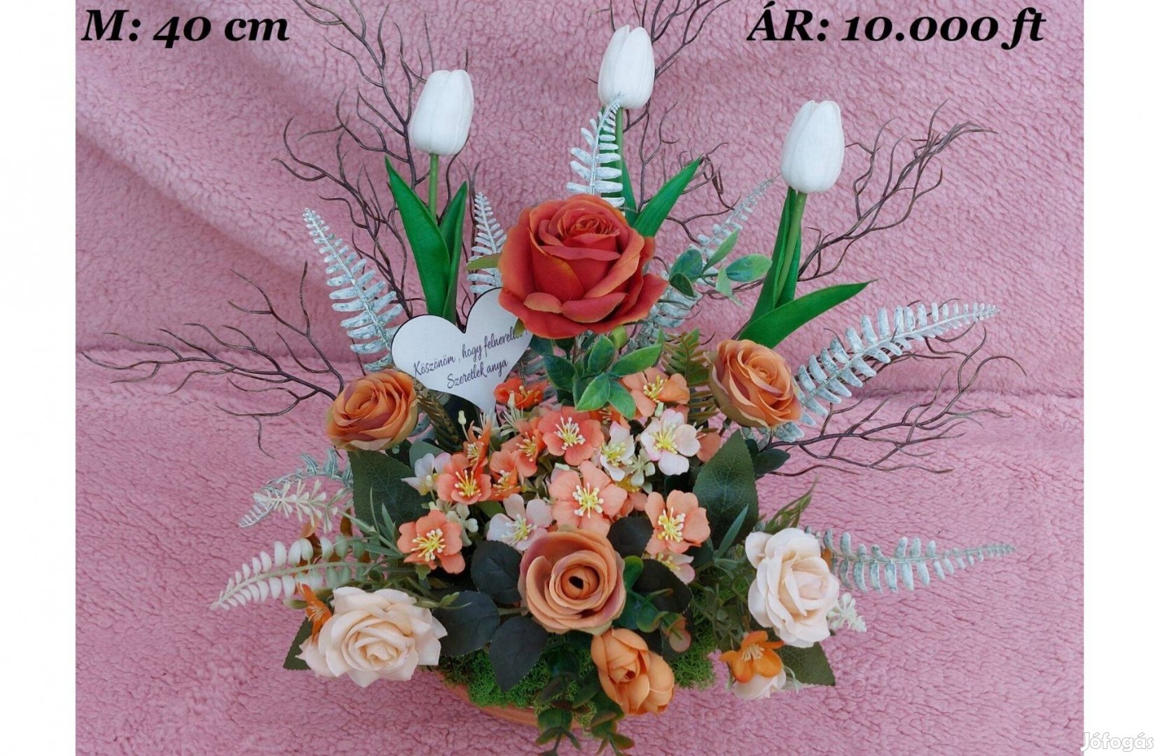 Gyönyörű páfrányleveles-tulipános-rózsás anyák napi ajándék