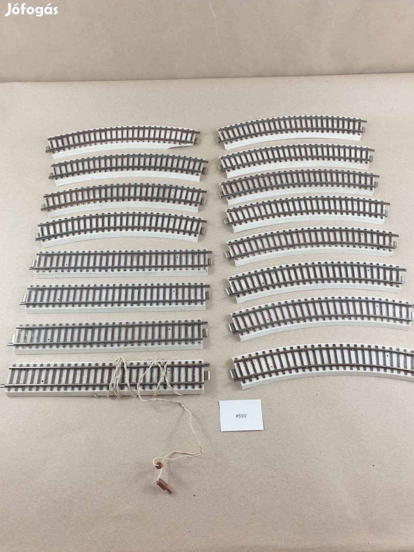 A képek szerinti használt, jó állapotú sínek. Egyiknek a talapzata hiányos, erről látható kép is.