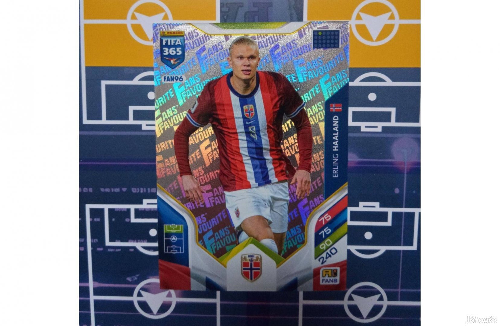 Eladó a képen látható Panini FIFA 365 Adrenalyn 2026 Erling Haaland (Norvégia) FAN96-s sorszámú Fans Favourite kártya.