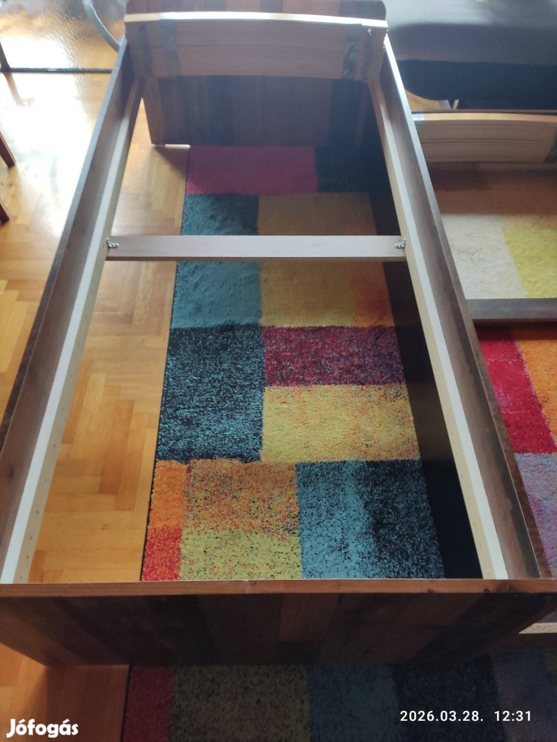 Eladó a képeken látható 90X180 cm méretű heverő, mely alul kihúzható ágyrésszel bővíthető. Kihúzva a mérete 180X200 cm. Kettő ágyrács a tartozéka. Igény szerint - szállítás miatt lapra szerelhető.