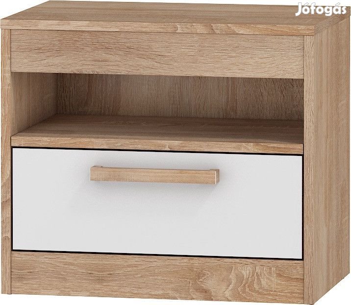 Éjjeliszekrény 1 fiókkal és nyitott polccal, világos sonoma tölgy és fényes fehér színben. További információkért kattintson ide: