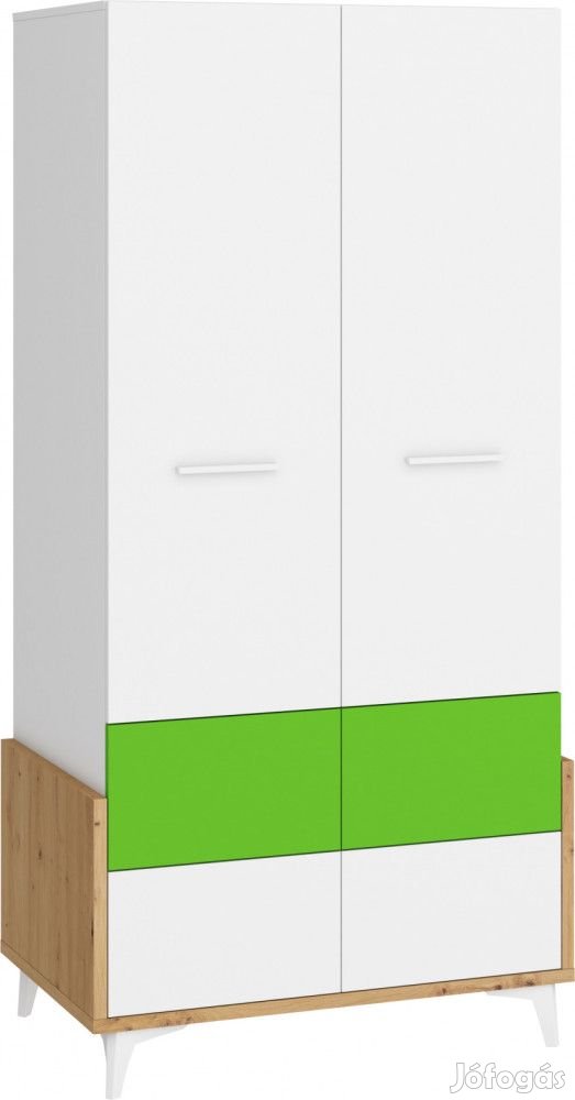 Gardróbszekrény 2 ajtóval, alul-felül polcokkal és vállfatartóval, artisan tölgy, fehér és zöld színben. További információkért kattintson ide: