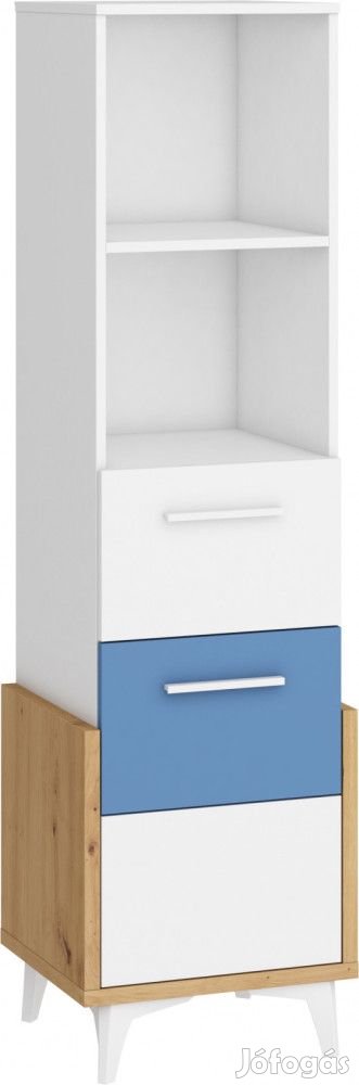 Könyvespolc 1 ajtóval, 1 fiókkal, nyitott polcokkal, az ajtó mögött polccal, artisan tölgy, fehér és kék színben. További információkért kattintson ide: