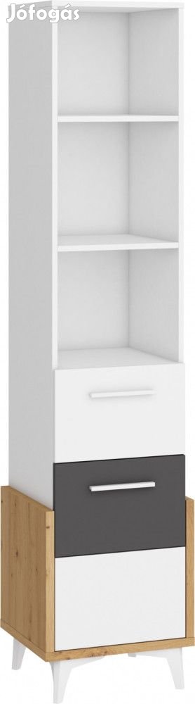 Könyvespolc 1 ajtóval, 1 fiókkal, nyitott polcokkal, az ajtó mögött polccal, artisan tölgy, fehér és szürke színben. További információkért kattintson ide: