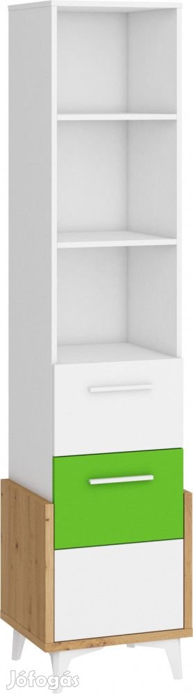 Könyvespolc 1 ajtóval, 1 fiókkal, nyitott polcokkal, az ajtó mögött polccal, artisan tölgy, fehér és zöld színben. További információkért kattintson ide: