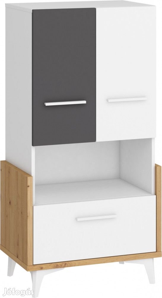 Könyvespolc 2 ajtóval, 1 fiókkal, nyitott polcokkal, az ajtó mögött polccal, artisan tölgy, fehér és szürke színben. További információkért kattintson ide:
