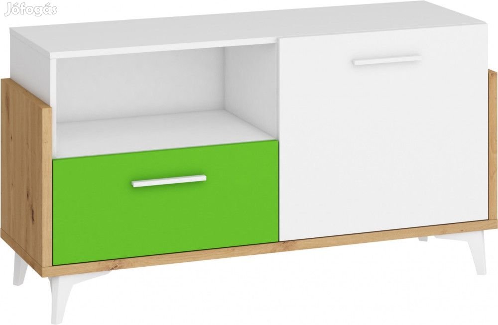 Komód 1 ajtóval, 1 fiókkal, az ajtó mögött polccal, artisan tölgy, fehér és zöld színben. További információkért kattintson ide: