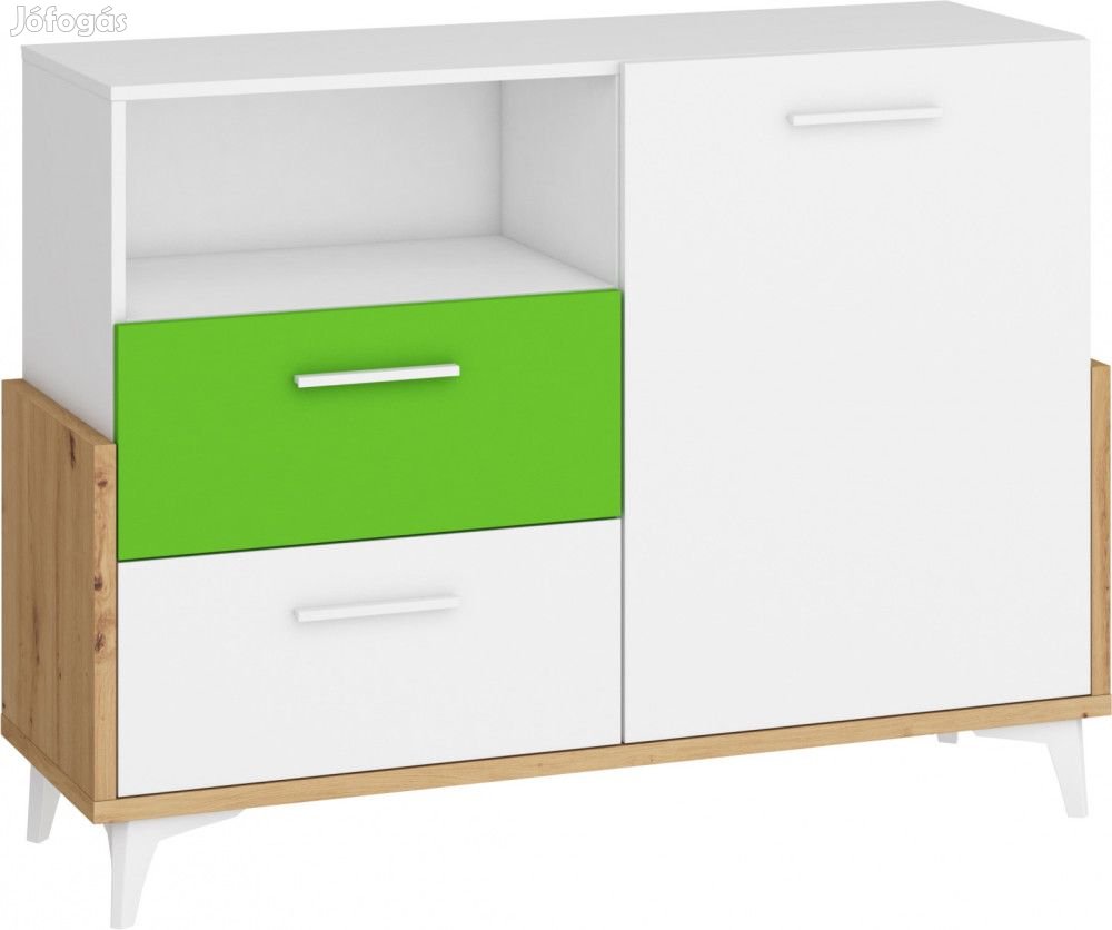 Komód 1 ajtóval, 2 fiókkal, az ajtó mögött polcokkal, artisan tölgy, fehér és zöld színben. További információkért kattintson ide: