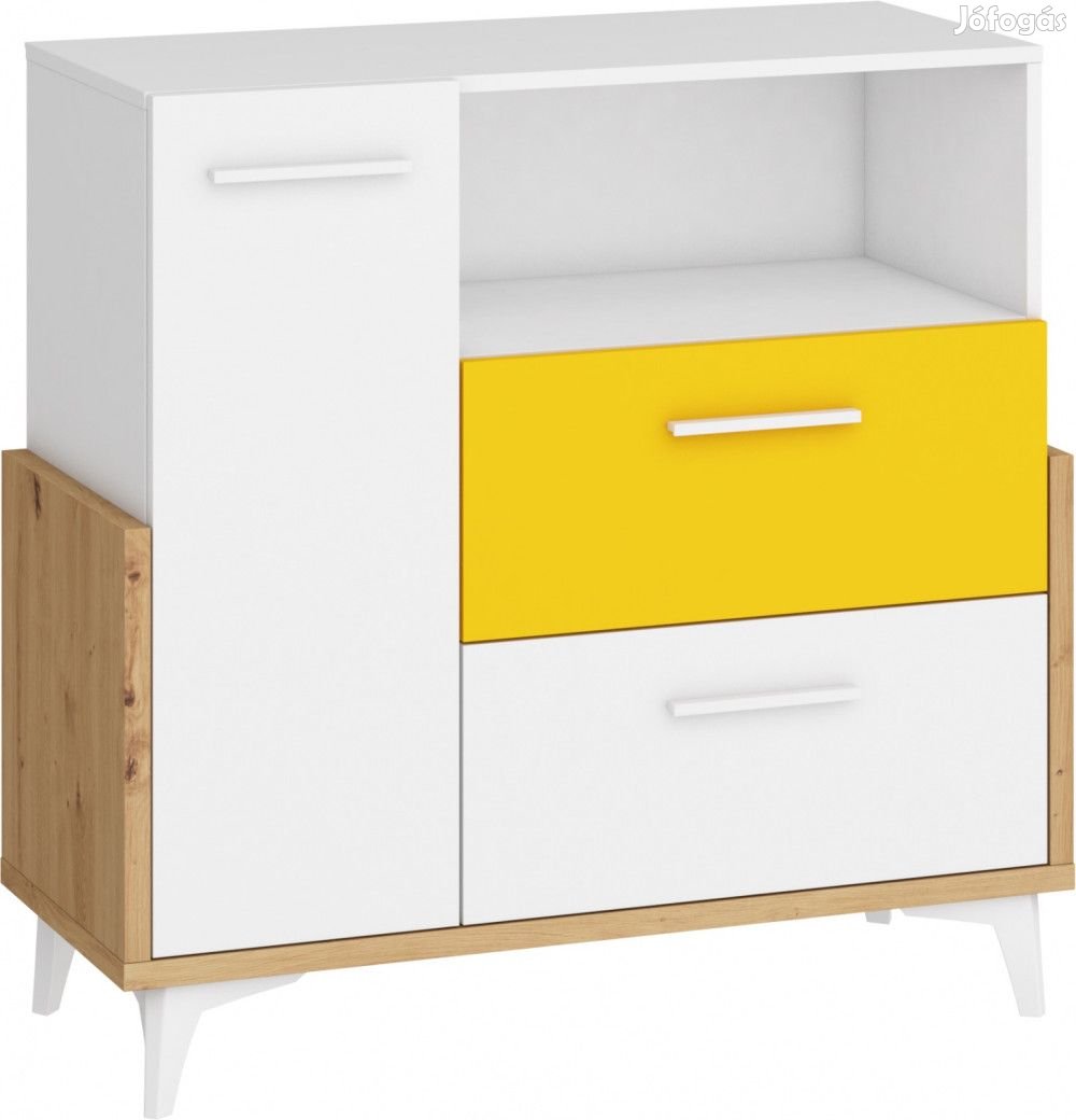 Komód 1 ajtóval, 2 fiókkal, az ajtó mögött polcokkal, artisan tölgy, fehér és sárga színben. További információkért kattintson ide: