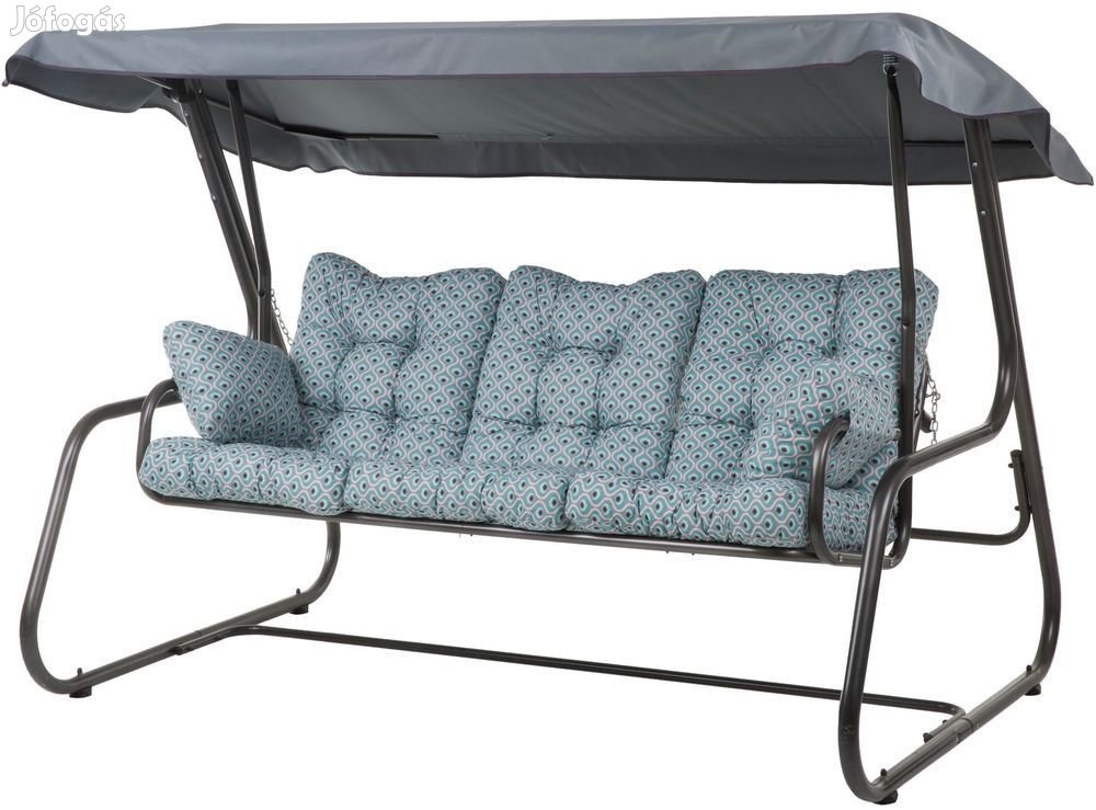 A vízszintesig lehajtható háttámla teljes kényelmet biztosít, ezen a négy személyes hintaágyon. Ággyá alakítható.