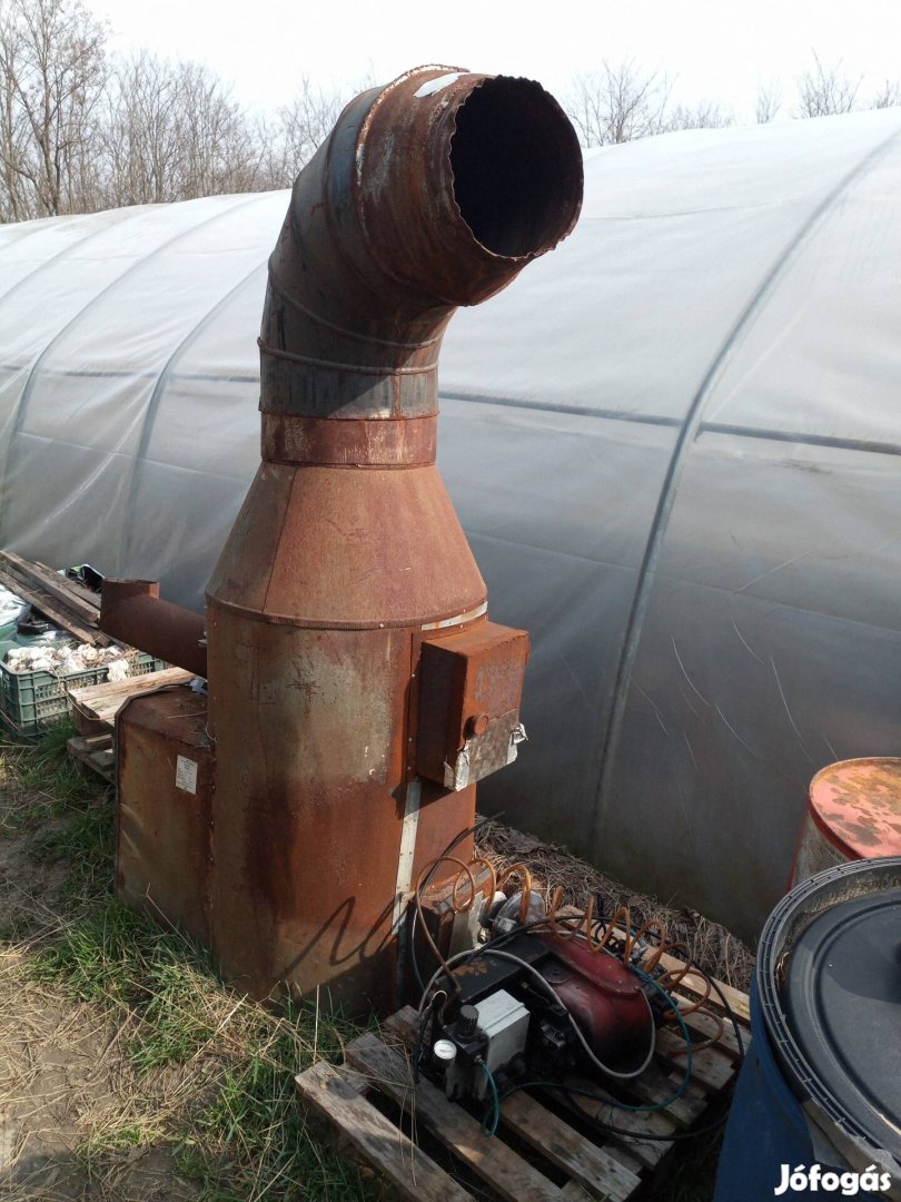 Eladó egy Tabi gyártású , 35 kw meleg levegős hőlégbefúvós kazán. Fólia sátorban használtam, fás kazánként és fáradt olaj égetővel is. A kazán belseje újra lett csinálva, amikor is 8 éve megvettem, így belse egyáltalán nincs ki égve. A kazánon alakítást csak a kémény csonknál kell eszközölni, annak kiépítése jól hegesztő kezet kíván, de végül is úgy használtam. Van a kazánhoz eladó fáradt olaj égető is. Pucolás takarítás rá fér, de 2 évvel ezelőtt használtam. Az egy légporlasztásos olaj égető, teljesen autómatán tud működni. Annak ára száz negyven ezerforint. De természetesen külön is eladóak.