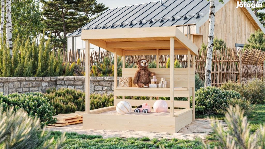 Adjon gyermeke játszóterének egy csipetnyi északi természetet ezzel a funkcionális és esztétikus fedett homokozóval, ahol a játékidő minden alkalommal különleges élménnyé válik.