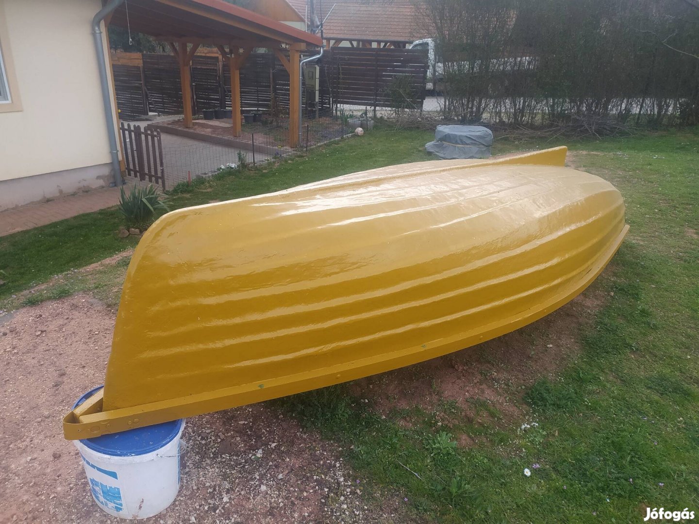 330 cm hosszú,120 cm szeles, lábráccsal,evező villa tartóval,kikötőszemekkel eladó!