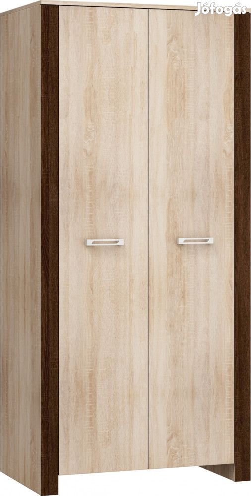 Gardróbszekrény 2 ajtóval, osztott belsővel, bal oldalon alul-felül vállfatartóval, jobb oldalon végig polcokkal, világos sonoma tölgy és sötét sonoma tölgy színben. További információkért kattintson ide: