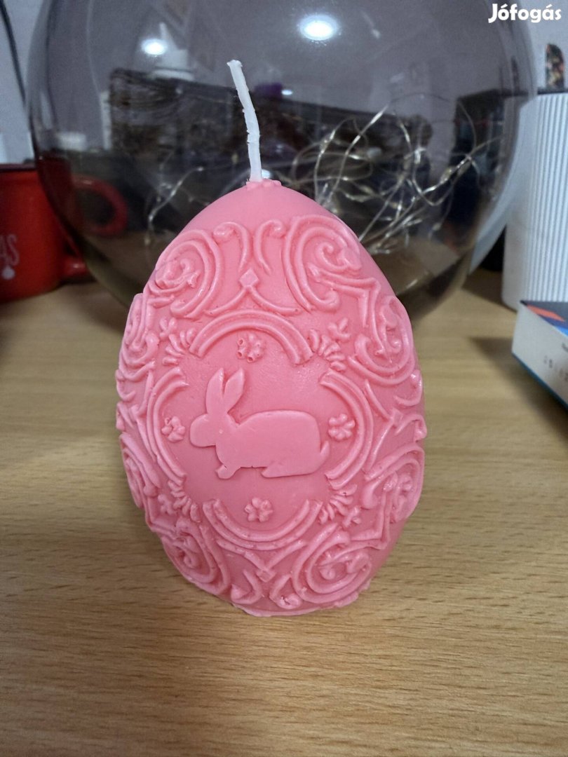 Eladó egy kézzel készített, tojás alakú dekor gyertya nyuszi mintával. Finom cseresznyevirág illattal készült, ami kellemes tavaszi hangulatot ad a lakásnak.