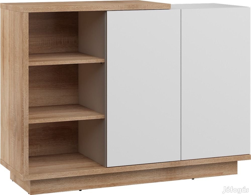 Komód 2 ajtóval, az ajtók mögött polcokkal és nyitott polcokkal, világos sonoma tölgy és fényes fehér színben. További információkért kattintson ide: