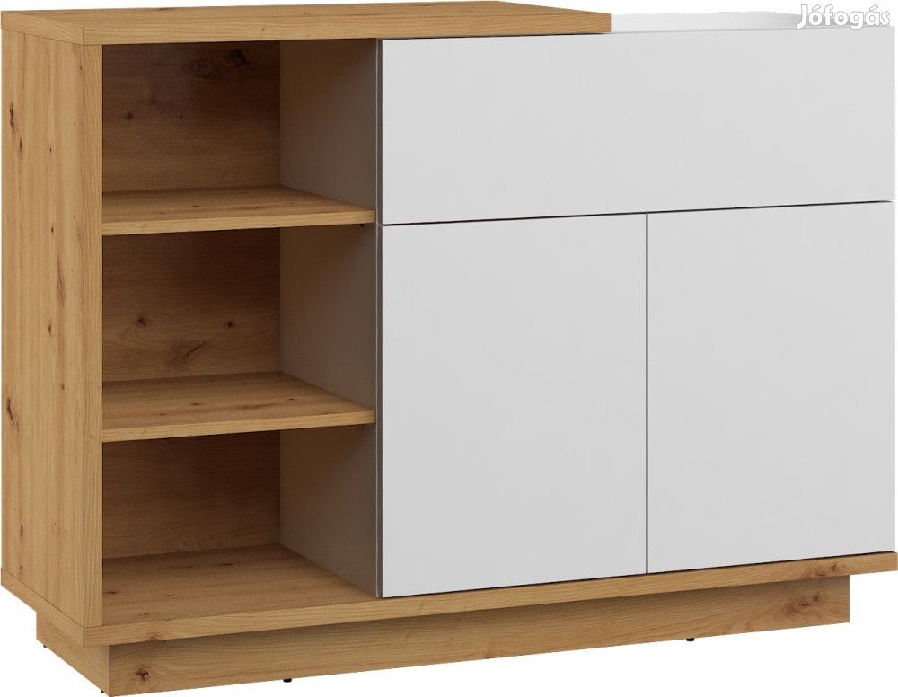 Komód 2 ajtóval, 1 fiókkal, az ajtók mögött polcokkal és nyitott polcokkal, artisan tölgy és fényes fehér színben. További információkért kattintson ide: