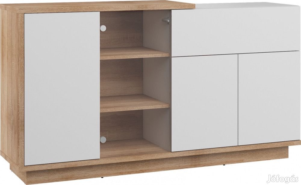 Komód 3 ajtóval, 1 fiókkal, 1 üvegajtóval, az ajtók mögött polcokkal, világos sonoma tölgy és fényes fehér színben. További információkért kattintson ide: