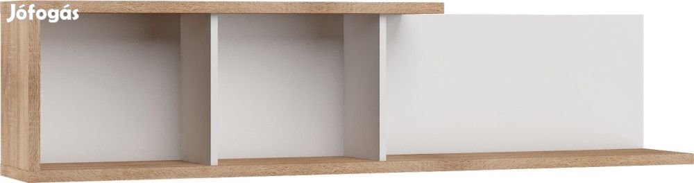 Falra szerelhető polc nyitott polcokkal, világos sonoma tölgy és fehér színben. További információkért kattintson ide:
