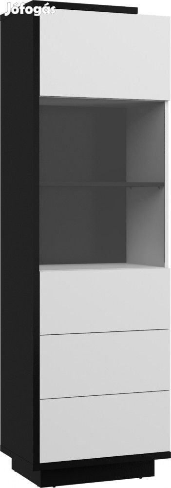 Részben üveges, 1-ajtós vitrines szekrény az ajtó mögött végig polcokkal, fekete és fényes fehér színben. További információkért kattintson ide: