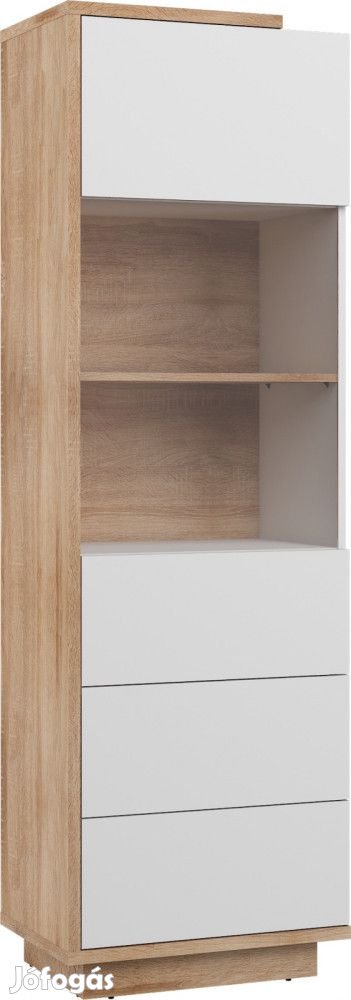 Részben üveges, 1-ajtós vitrines szekrény az ajtó mögött végig polcokkal, világos sonoma tölgy és fényes fehér színben. További információkért kattintson ide: