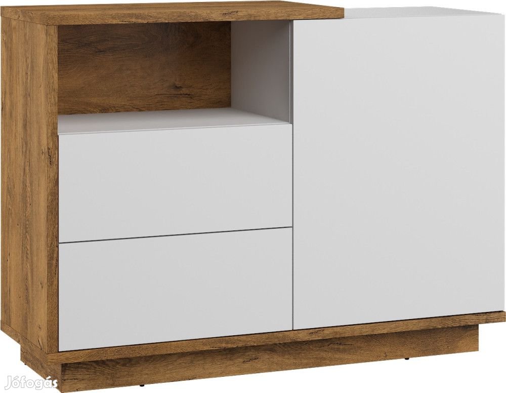 Komód 1 ajtóval, 2 fiókkal, az ajtók mögött polcokkal és nyitott polccal, burgundy tölgy és fényes fehér színben. További információkért kattintson ide: