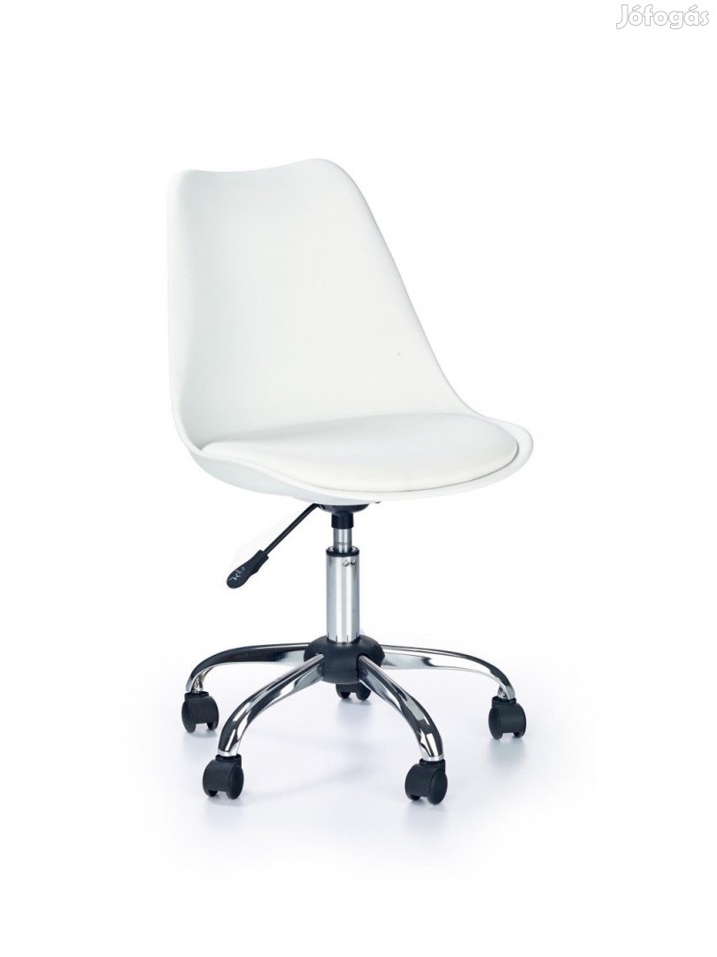 Design ifjúsági / gyerek forgószék fehér textilbőr ülőrésszel és fehér műanyag háttámlával.