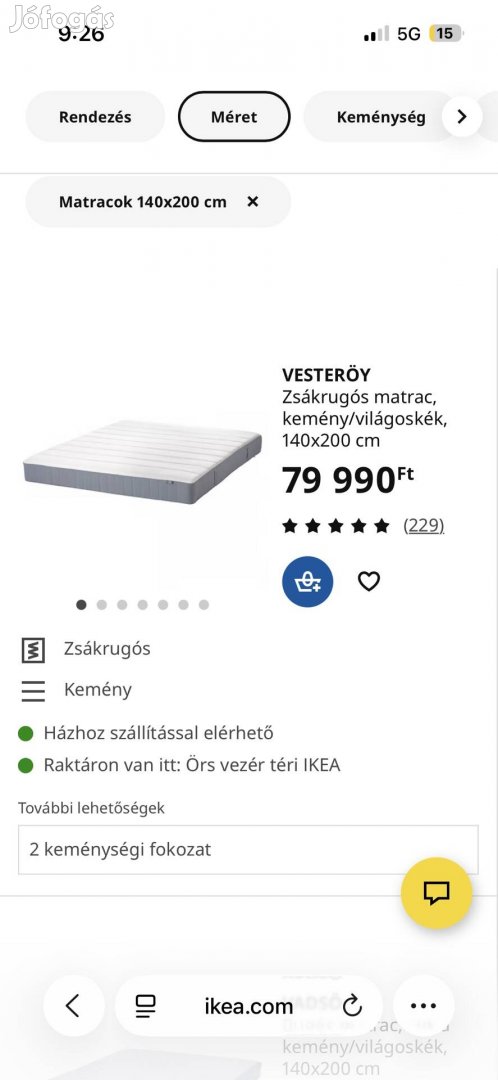 Eladó 5 db 160-as matrac és 2 db 140-es matrac ebből a típusú Ikeás matracból.