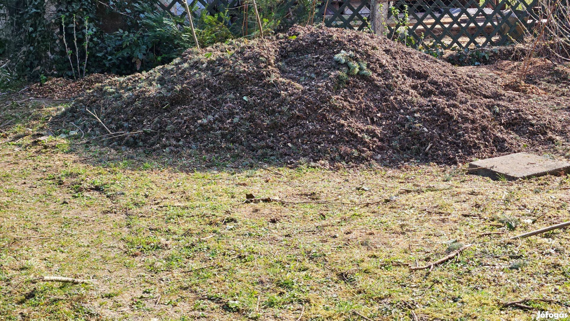 Ingyen elvihető faapríték, mulcs, ágdarálék nagy mennyiségben. Az apríték főleg fenyőből és tujából áll. Szállításban nem tudok segíteni. Kővágóörs, Pálkövéről vihető el megbeszélt időpontokban.