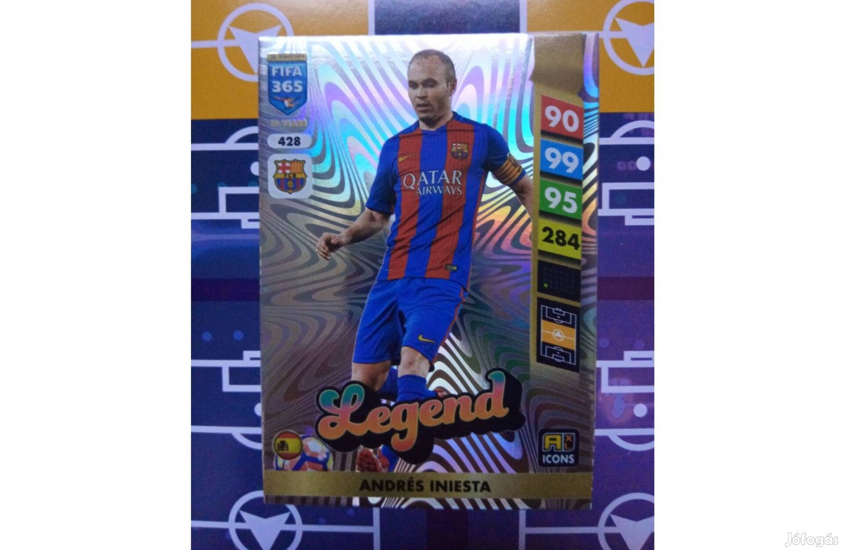 Eladó a képen látható Panini FIFA 365 Adrenalyn 2025 Andrés Iniesta (FC Barcelona) 428-s sorszámú Icon Legend kártya.