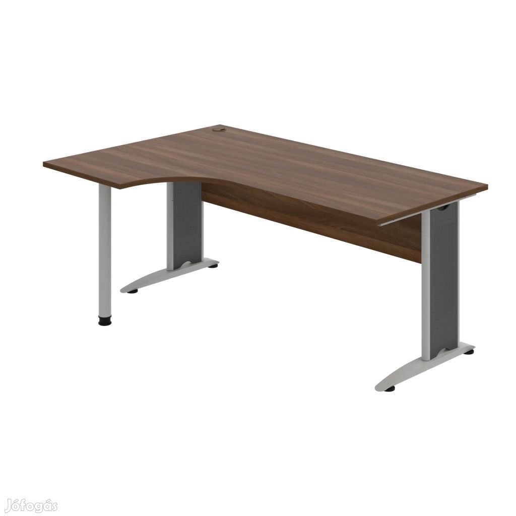Az elegáns fémlábak és a laminált válaszfal kombinációja különleges megjelenést kölcsönöz az asztalnak.