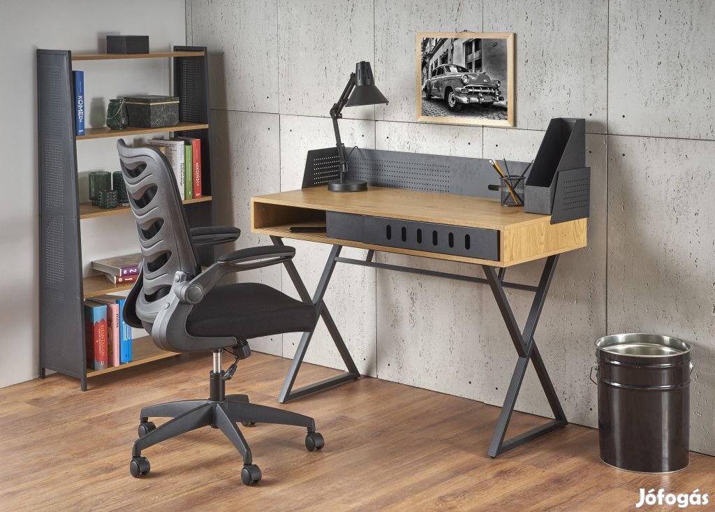 Ez az íróasztal egy modern, funkcionális asztal, amely stílusos megjelenésével és praktikus kialakításával tökéletes kiegészítője az otthonnak.