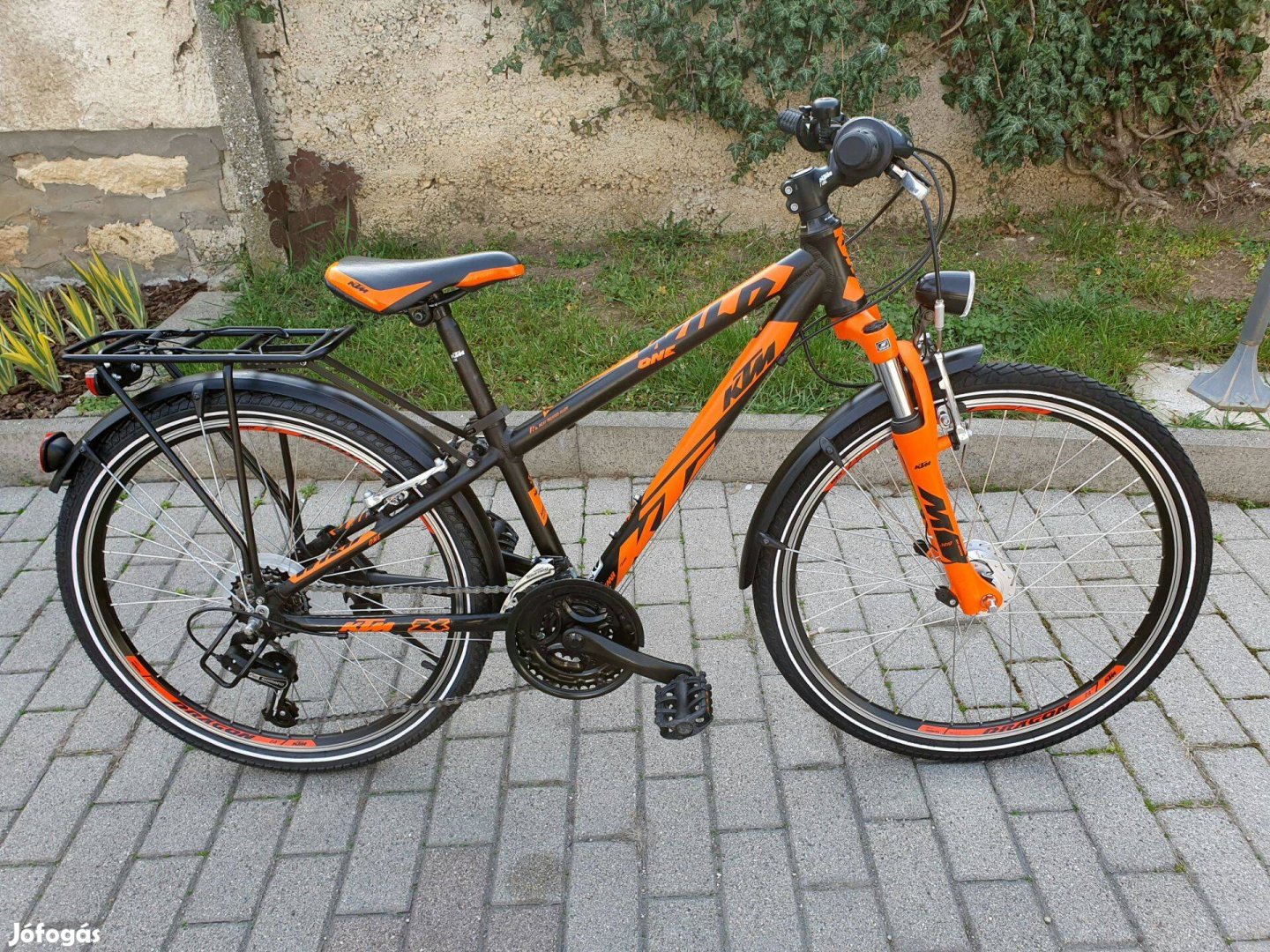 Eladó KTM alumínium vázas kerékpár. Shimano Revoshift 3x6 sebességes markolat váltókarokkal. Shimano Tourney első és hátsó váltóval. Tektro fékkarokkal és V-fékekkel. Shimano Nexus agydinamóval. Nagyon jó állapotban. Érdeklődni csak telefonon!
