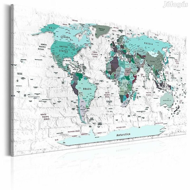 A magas minőségű "Égszínkék világtérkép téglafal háttéren" képet speciális flíz vászonra nyomtatjuk. Ez a sok, boltunkban megrendelhető eredeti minták egyike.