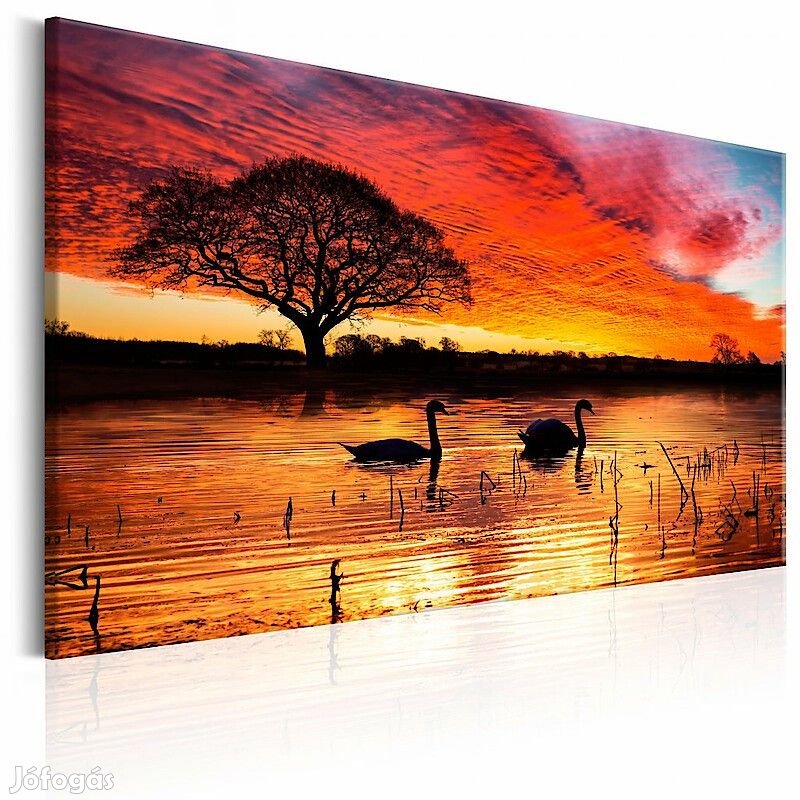 A magas minőségű "Hattyúk a tavon napnyugtakor" képet speciális flíz vászonra nyomtatjuk. Ez a sok, boltunkban megrendelhető eredeti minták egyike.